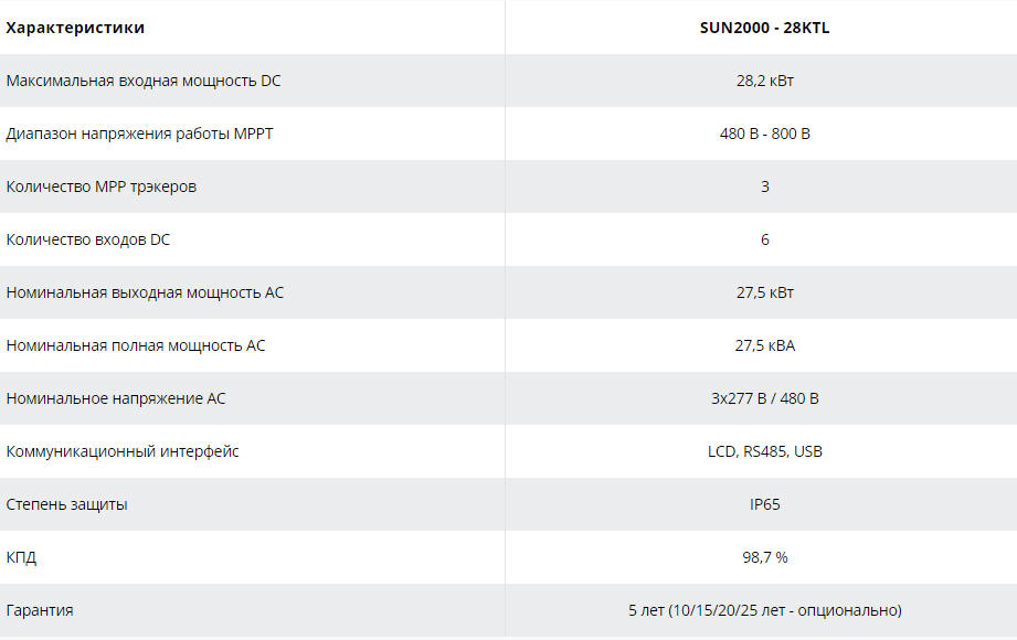 Широкий диапазон рабочего напряжения - от 320 до 800 В, который позволяет подсоединять большое число цепочек солнечных модулей.